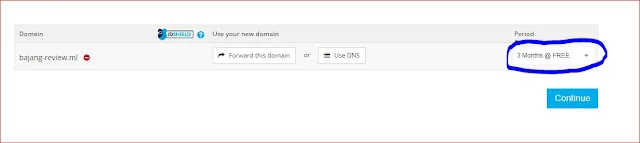 pada gambar di atas yang di lingkari warna biru itu tempat anda mengubah masa aktif domain gratis anda setelah di ubah sesuai kebutuhan anda kemudian klik continue dan kemudian anda akan di arahkan ke bagian ini